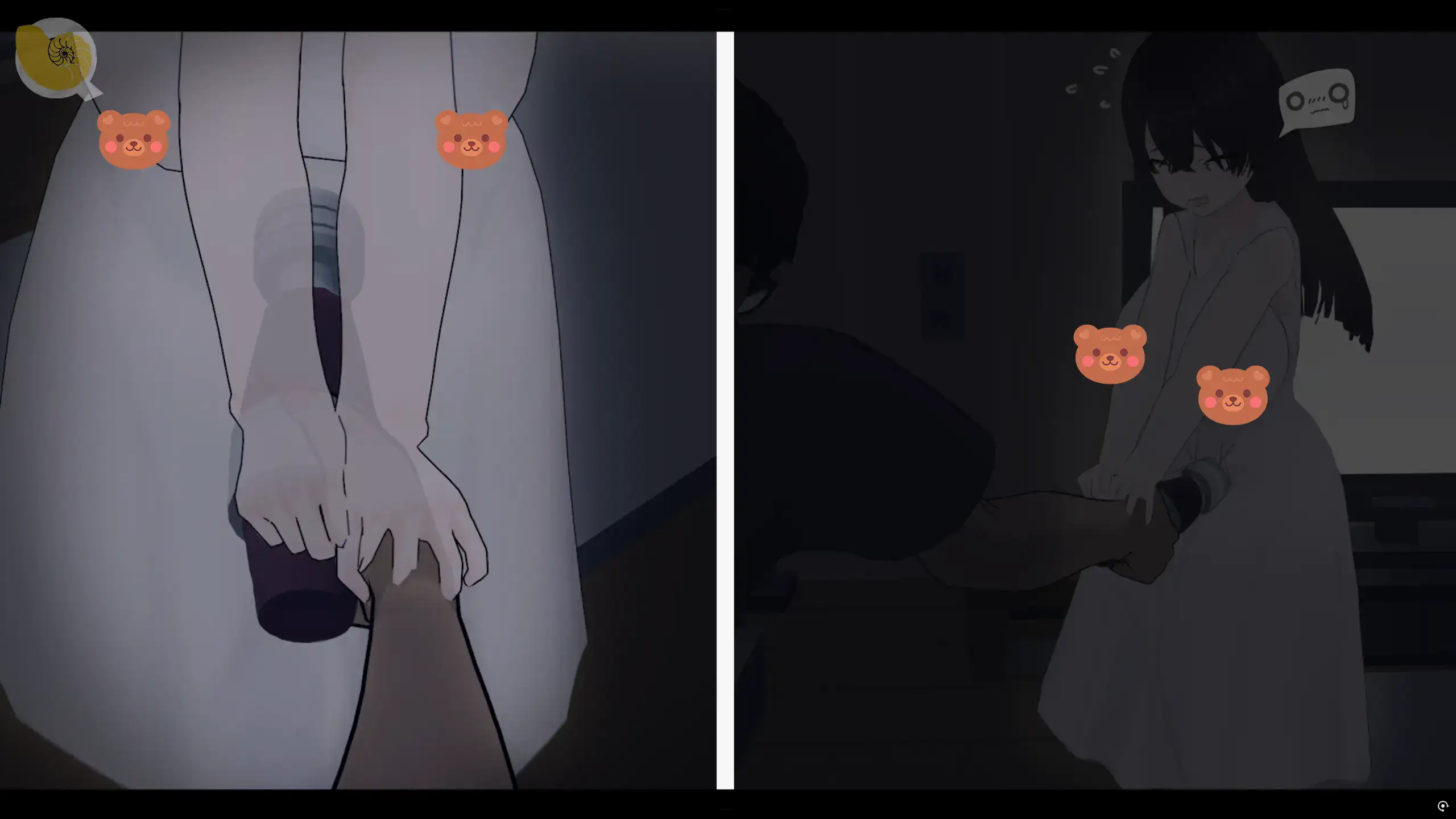 夜晚對抗階段中女幽靈主動接近進行吸取行動的互動畫面|夜晚对抗阶段中女幽灵主动接近进行吸取行动的互动画面|夜の対抗フェーズで女幽霊が接近して行動する演出|An interaction scene where the ghost approaches during the night confrontation phase