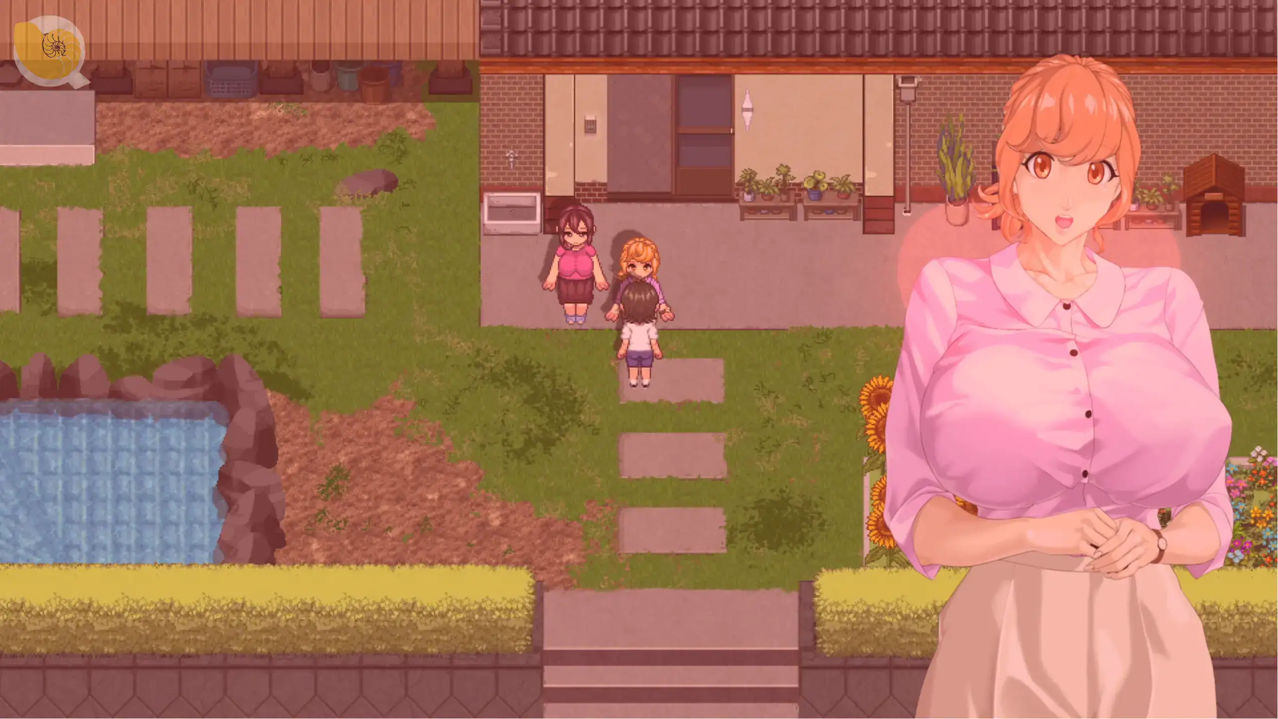 《おててつないで》村莊住宅區女性角色站在庭院場景|《おててつないで》村庄住宅区女性角色站在庭院场景|『おててつないで』住宅前の庭に立つ女性キャラシーン|Otetetsunaide female character standing in village yard residential scene
