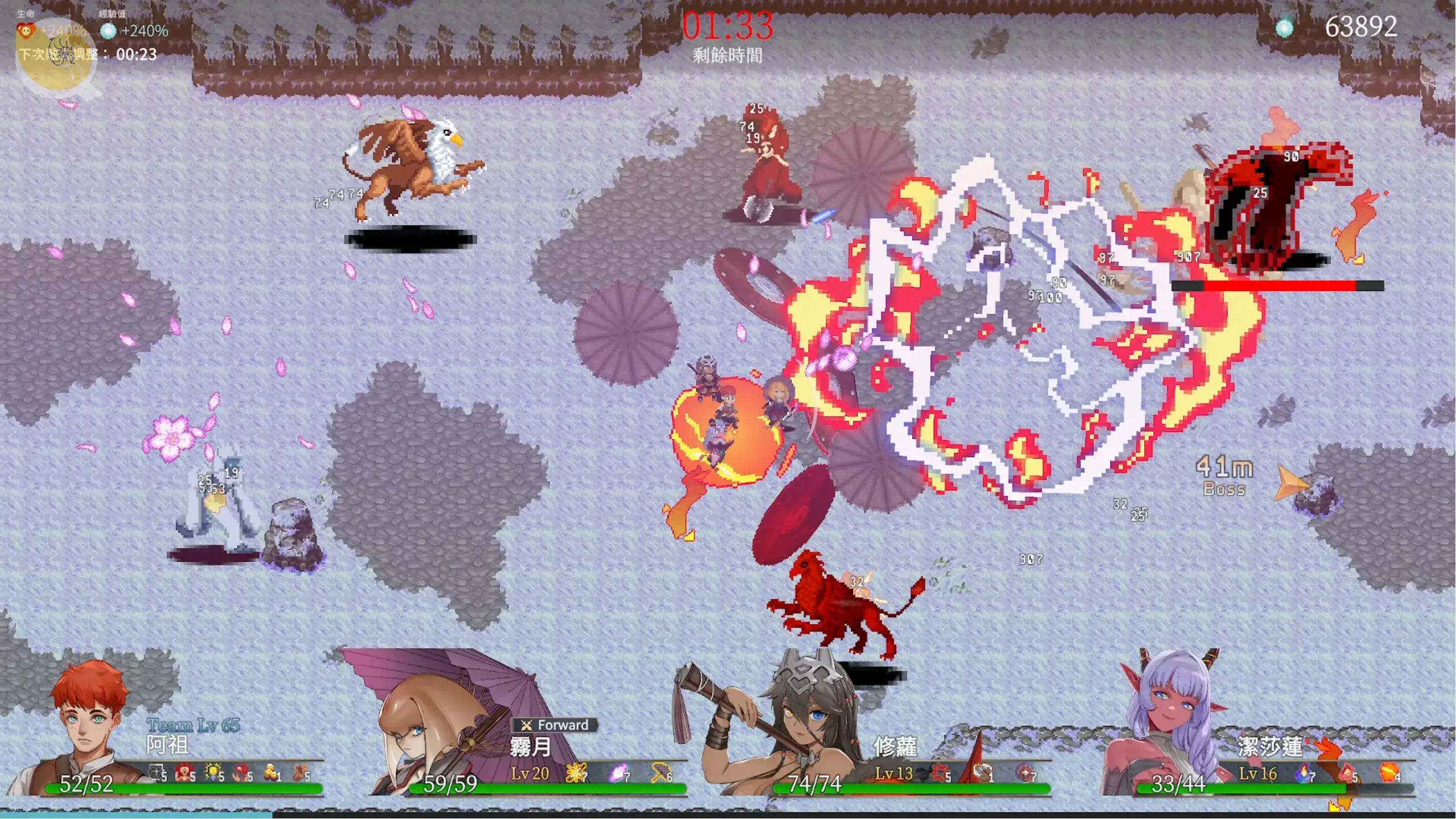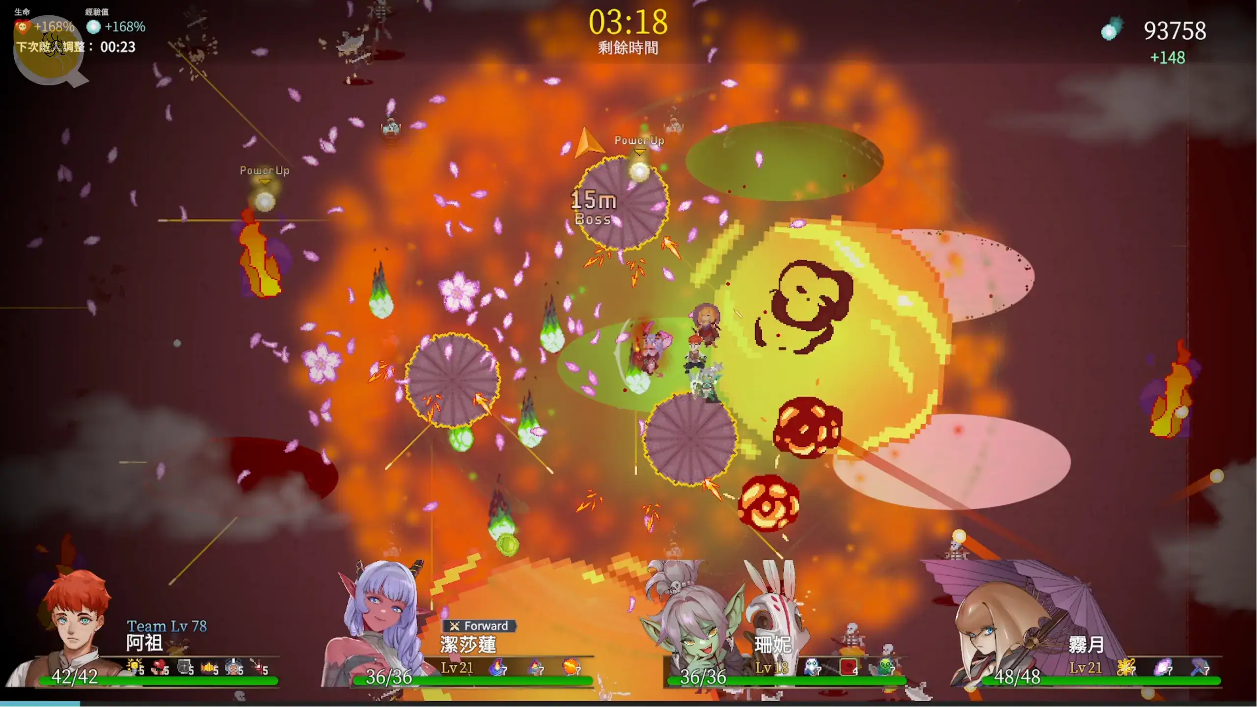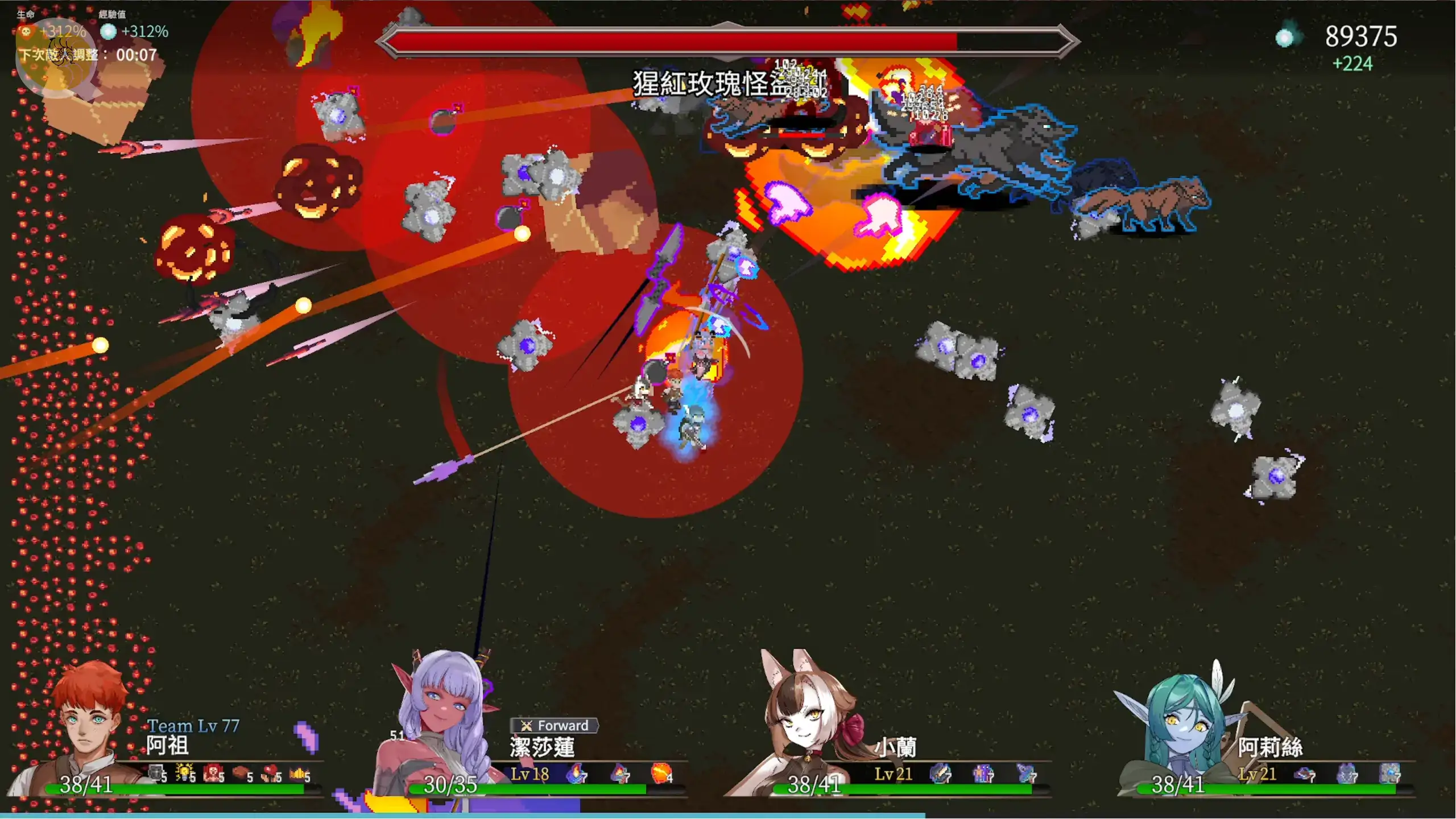 3 人小隊、角色差異、武器進化、羈絆效果、神器強化、BOSS戰,基本上不看色色題材,也已經是一款成熟的類倖存者遊戲。