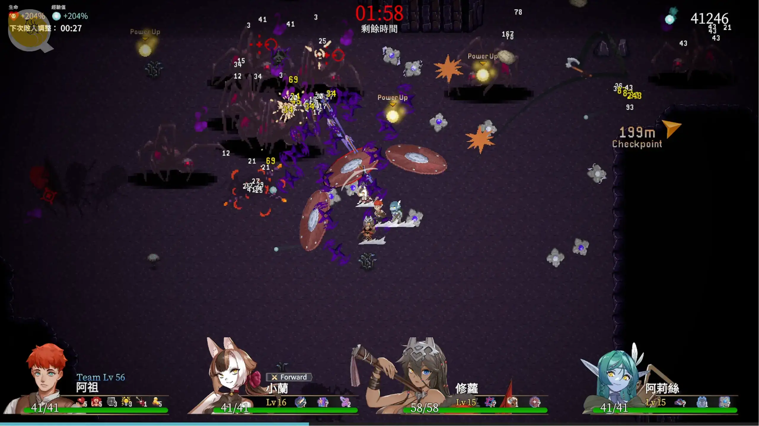 基本上倖存者類型的戰鬥通常是一個武器,然後開始升級進階、取得更多武器或道具、或是把能力升級到滿,給各位滿滿的彈幕攻擊~